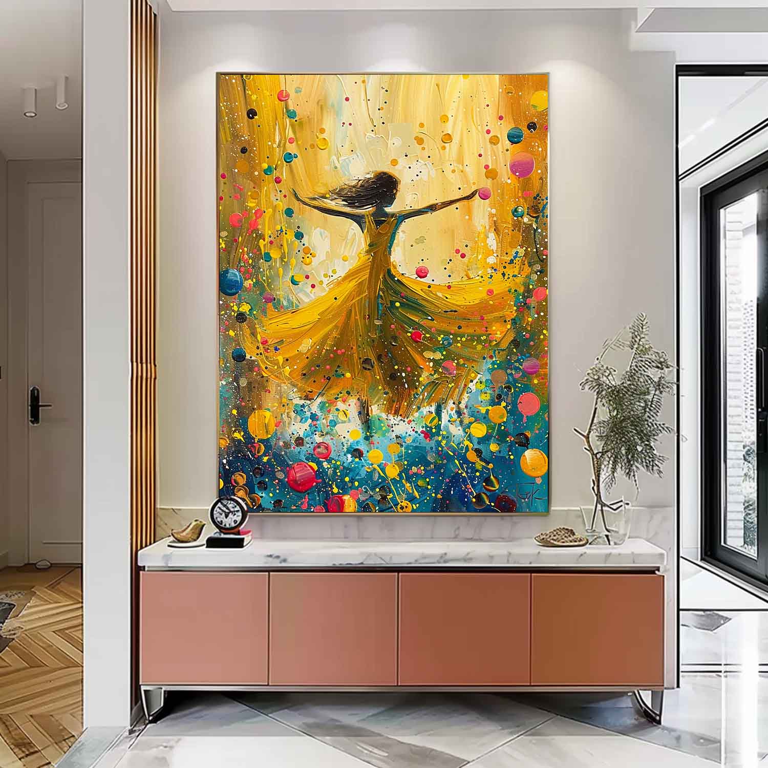 Original Exquisite Ballet Girl Wall Art Large Multicolor Girl Painting Framed Colorful Artwork Gift