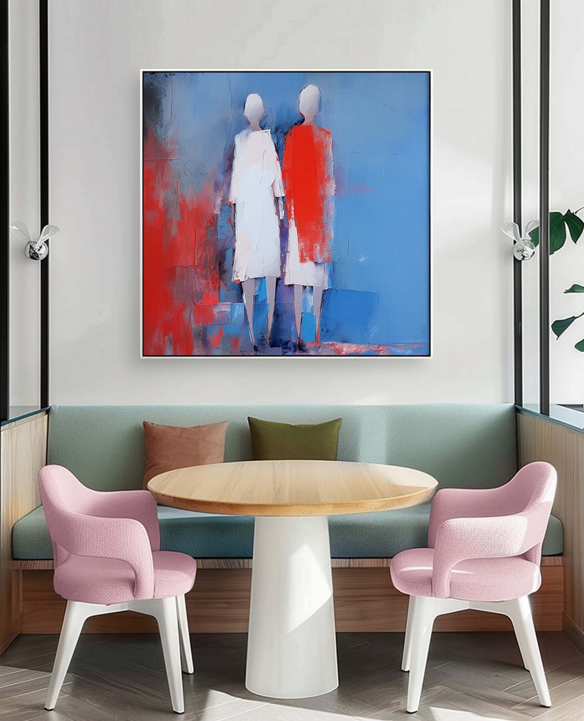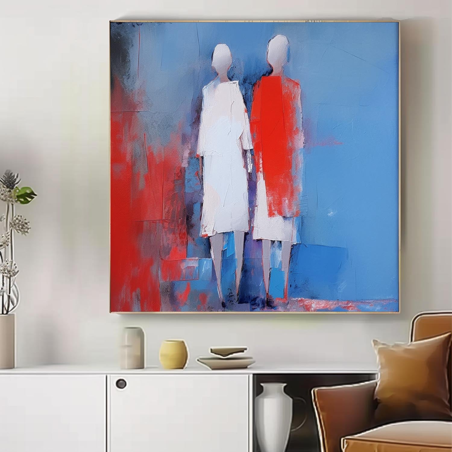 Red And Blue Abstract people's Wall Art Original Character Outline Painting Canvas Large Square Artwork