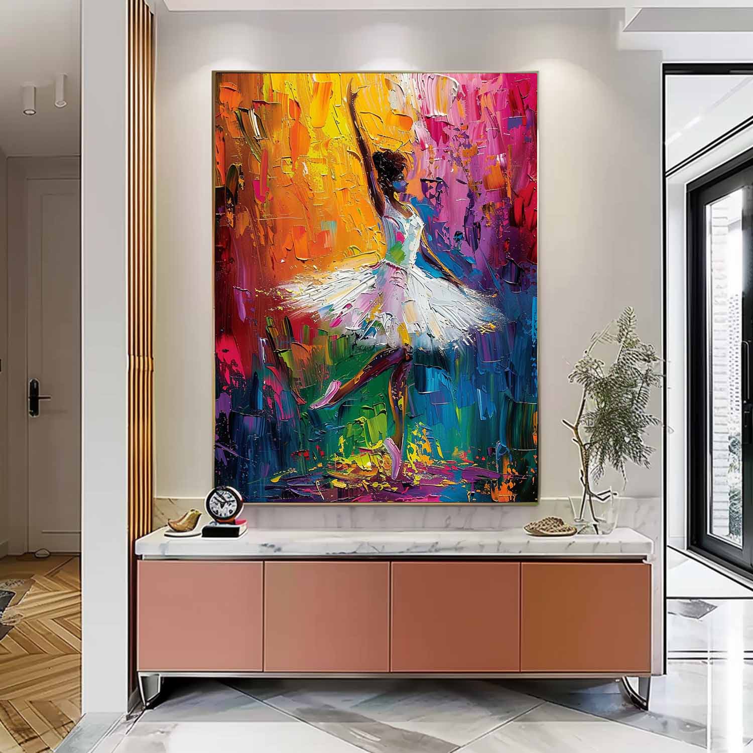 Colorful Artwork Original Exquisite Ballet Girl Wall Art Large Multicolor Girl Painting Framed Gift