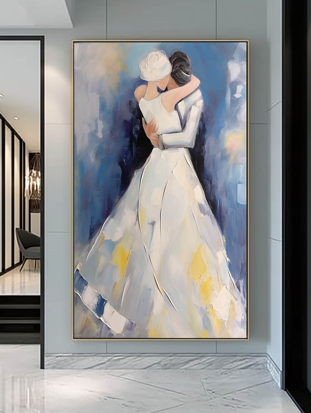 Original Wall Art Character Outline Painting Large Texture Painting Framed Wedding Artwork Anniversary Wedding Gift