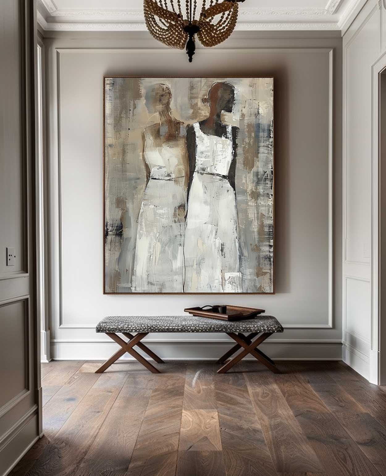 Large Figure Painting Shadow Abstract Artwork Original Woman Silhouettes Wall Art For Living Room