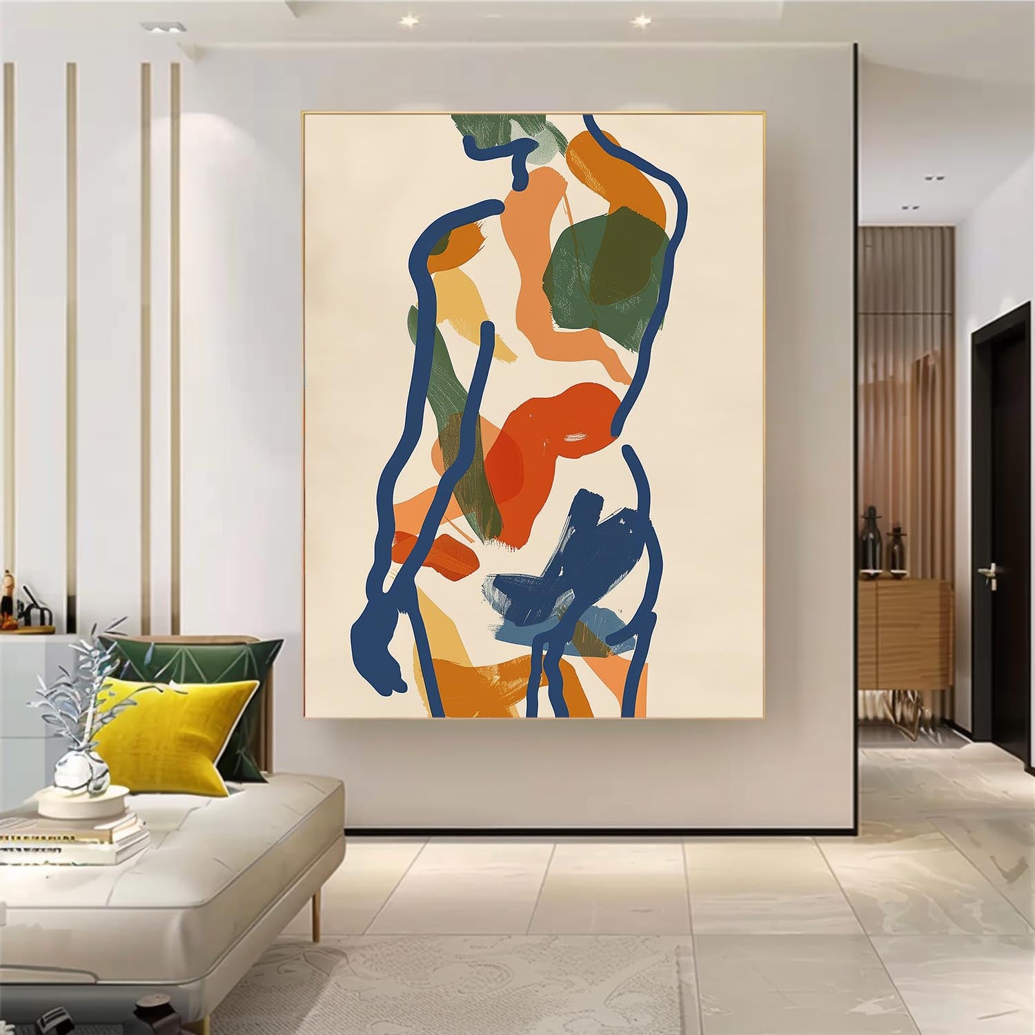 Vibrant Boho Original Abstract Body Line Outline Wall Art Figure Contour Acrylic Painting Minimalism Artwork