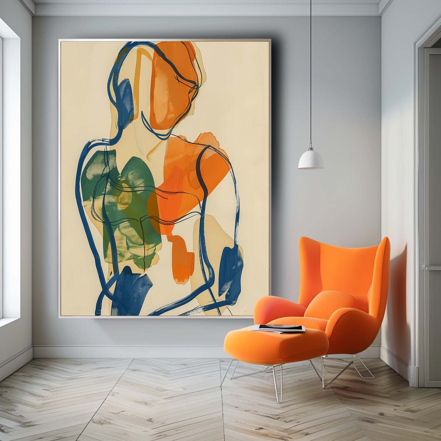 Bright Colors Original Abstract Body Line Outline Wall Art Figure Back Contour Acrylic Painting Minimalism Artwork