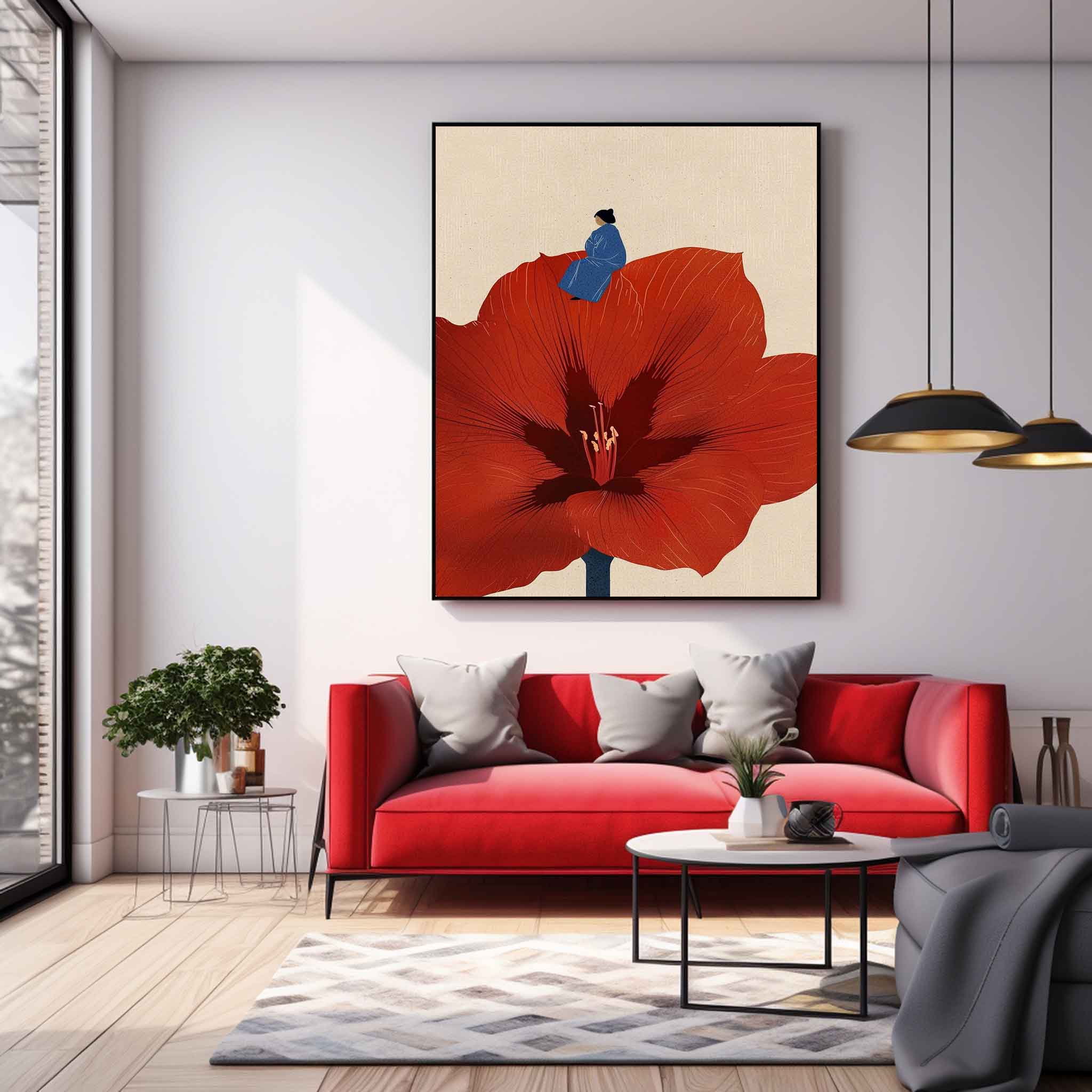 Illustration style Abstract Artwork Large Figure Painting Original Girl On Flowers Wall Art Home Decor