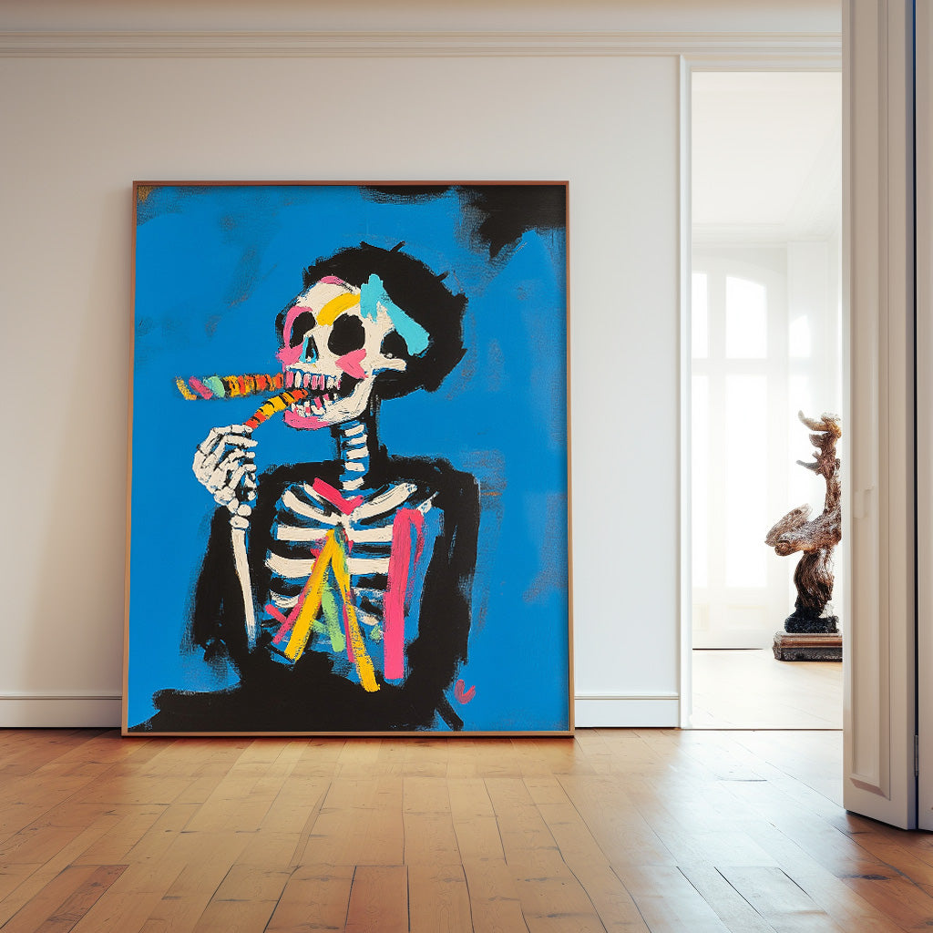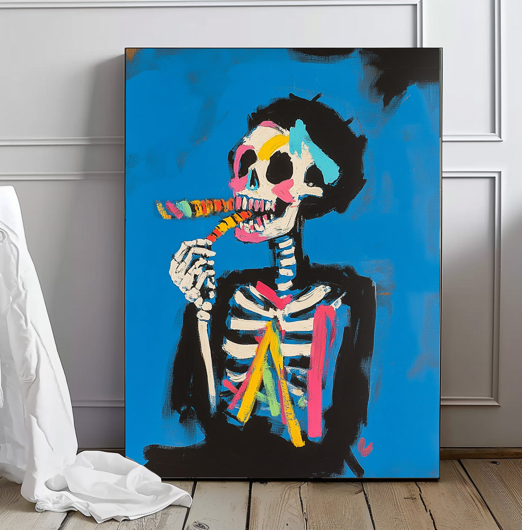 Colorful Original Abstract Wall Art Lovely Skeleton Painting Large Acrylic Painting Framed Unique Home Decor