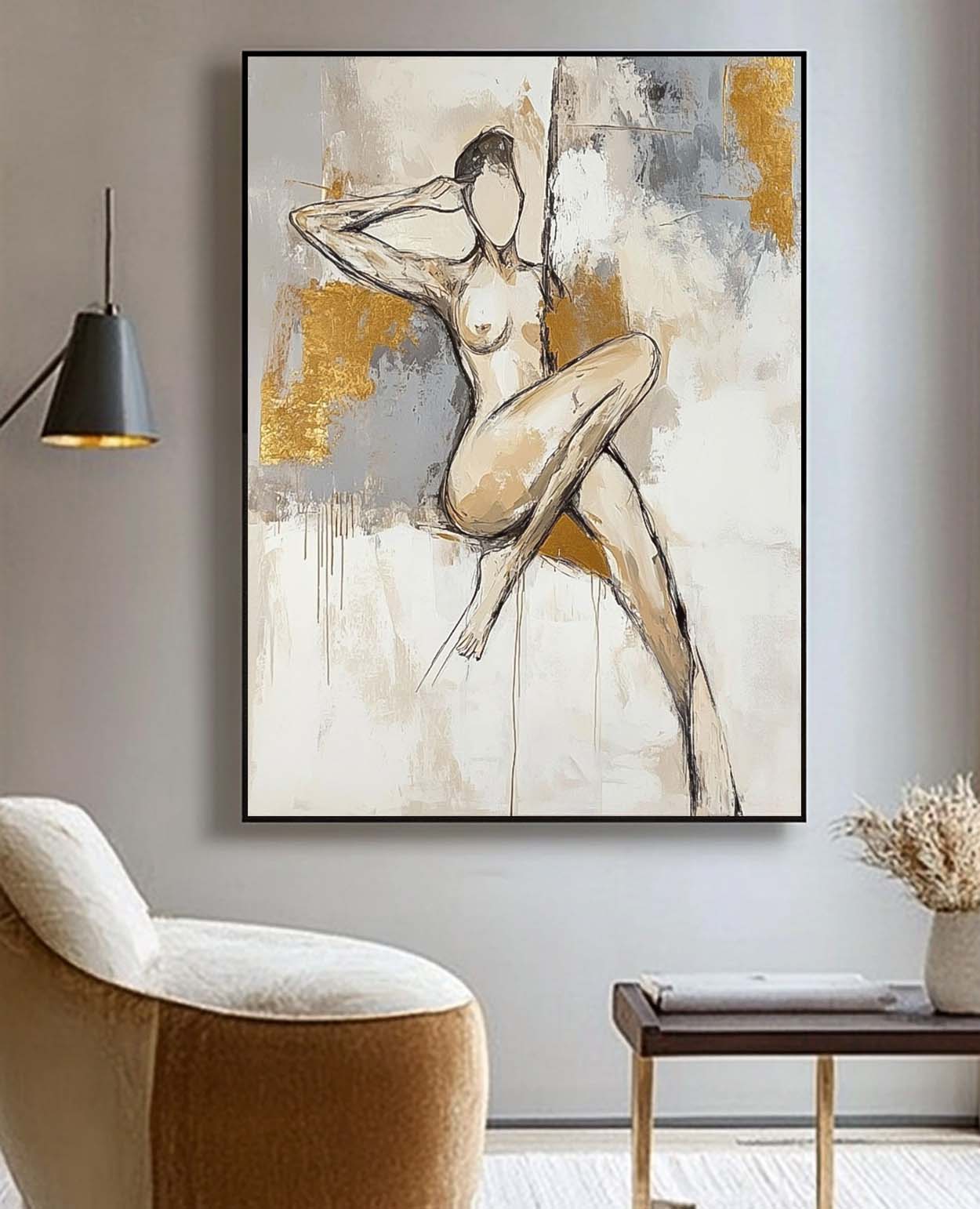 Original Contemporary Woman Wall Art Large Character Outline Acrylic Painting Framed Abstract Lady Artwork