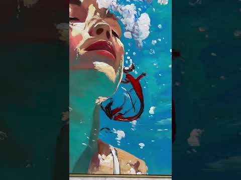 Square Diving In Ocean Girl Acrylic Painting Lady Artwork Original Woman swimming Wall Art For Living Room